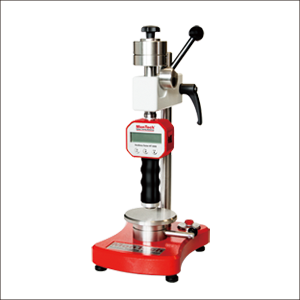 | 試験概要 | 試験片に押針を押し付けた時の凹み(押込み深さ)から求める値です。対象物の硬さによって、使用するデュロメーターのタイプが変わります。JIS規格 ではタイプA~E,AMとされています。 |