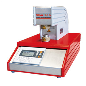 | 試験概要 | 規定温度に予熱した2枚の円形の平行板にサンプルを挟み、高速圧縮します。加熱し荷重をかけた後、サンプルの厚みを測定します。測定したサンプルの厚さを100倍した値を可塑度とします。 可塑度残留指数は、サンプルをエイジングオーブンで140℃30分加熱した後の可塑度を加熱前の可塑度で除したものに、100を乗じて求めます。 |
